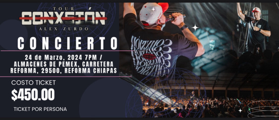 INFORMACION TOUR CONXION ALEX ZURDO EN REFORMA CHIAPAS, MEXICO